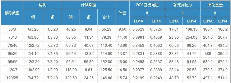 JL/LB1A、JL/LB14鋁包鋼芯鋁絞線性能參數(shù)