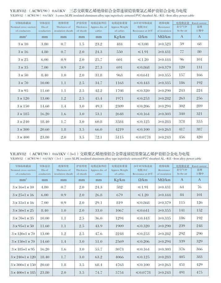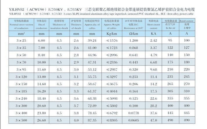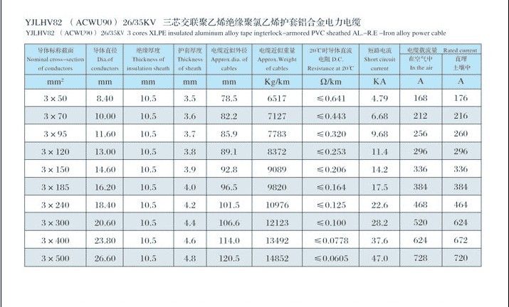 0.6/1kV、3.6/6kV、6/10kV、8.7/15kV、12/20kV、18/30kV、21/35kV、26/35kV